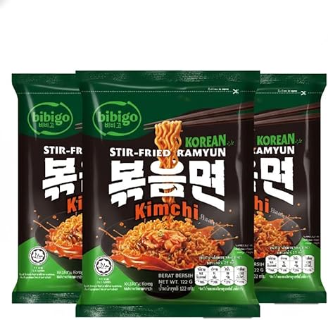 3 راميون مقلي كوري بنكهة الكيمتشي من بيبيجو - 122 جم