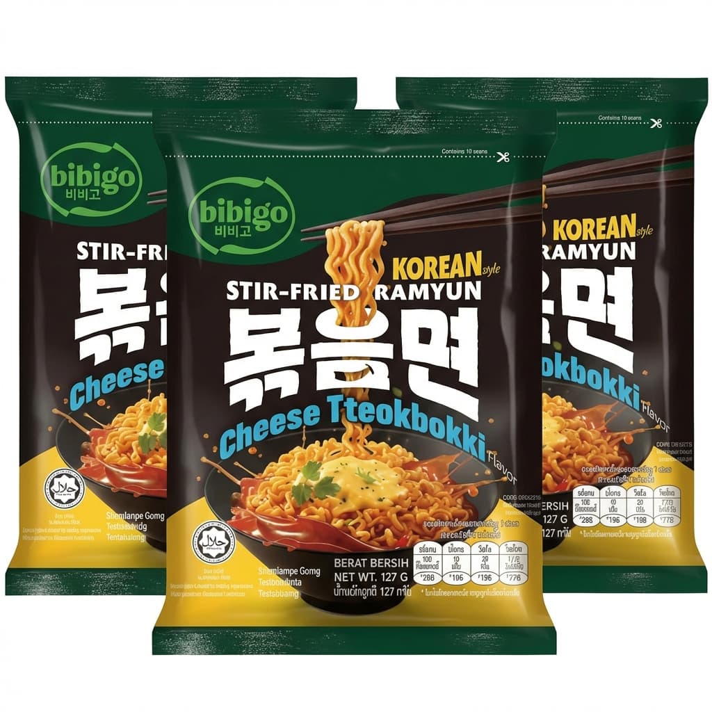 3 راميون توكبوكي الكوري المقلي بنكهة الجبن من بيبيجو 3 × 127 جم
